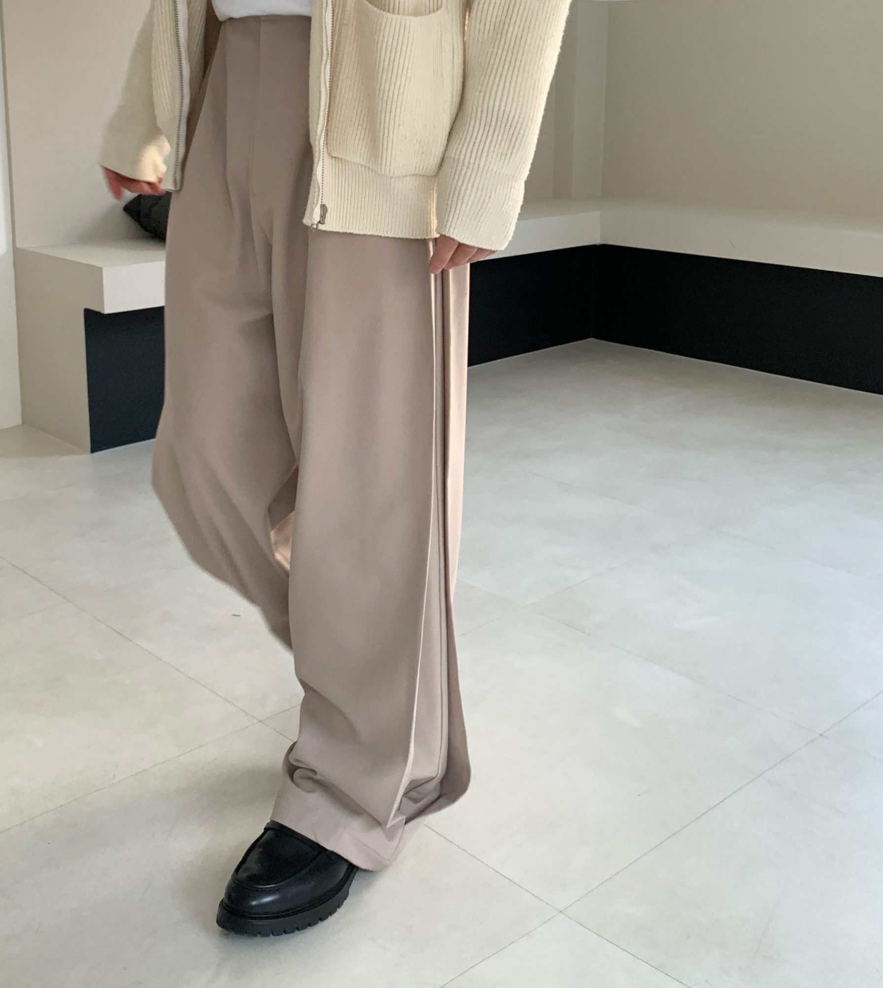 サイドスリット ワイドパンツ(ベージュ)